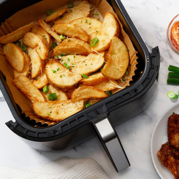 These papers are specially designed to fit most air fryer baskets and allow for healthier cooking by reducing the need for added oils or fats. Simply place the paper in the air fryer basket, add your favourite foods, and let the air fryer do its magic. Once you're done, just dispose of the paper and enjoy your delicious meal.